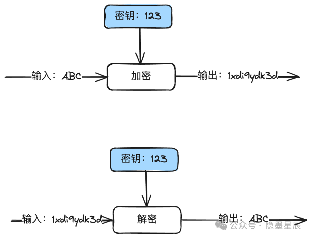 对称加密是使用相同的密钥(称为对称密钥)进行加密和解密。双方须共享相同的密钥。好处是使用简单且高效,缺点是密钥分发和管理容易泄露。