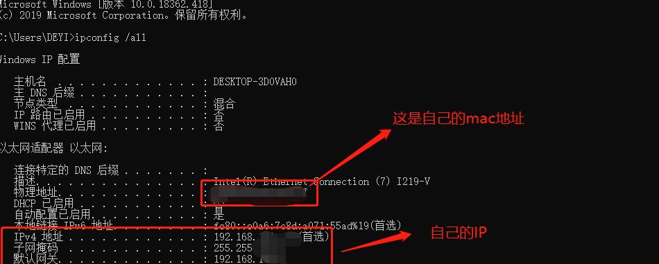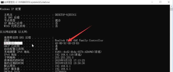 在Windows操作系统中,查看MAC地址非常简单。您只需按下Win+R键组合,然后在运行框中输入“cmd”并按下Enter键打开命令提示符窗口。在命令提示符窗口中,输入“ipconfig/all”命令,然后在结果中找到对应的物理地址即为MAC地址。