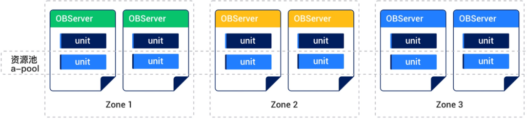 通过 Unit 的概念,我们将 OceanBase 数据库的物理概念和逻辑概念进行了关联。每个租户有若干 Unit ,分布于若干 Zone 的若干节点上。而每个节点上分布有若干个 Unit ,这些 Unit 归属于不同租户。概括的讲:集群由节点组成,节点是 Unit 的容器。租户由 Unit 组成,Unit 是数据库对象的容器。