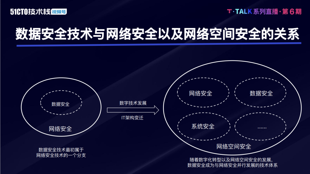 从历史角度看,起初数据安全只是网络安全的一个子集,但随着数字化转型以及IT架构的变迁,数据业务作为核心的资产与要素,受到了越来越多的重视。数据安全也逐渐演进为了与网络安全平级的,共同服务于网络空间安全的一个子维度,未来数据安全也将极有可能迭代出更多的细分领域,这是数据安全未来发展的一大趋势。